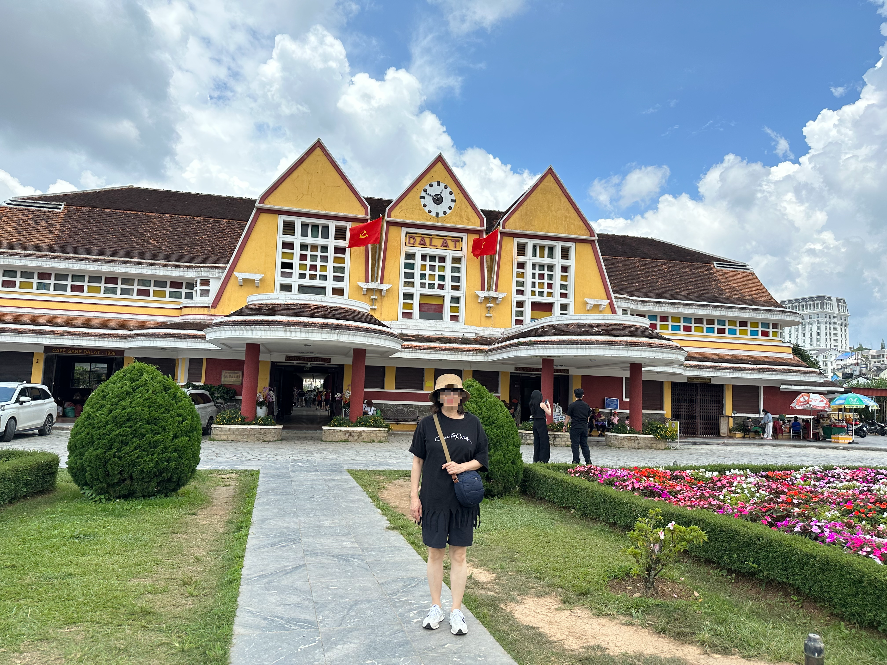 달랏 기차역은 1943년에 아르데코양식으로 지어졌습니다. 프랑스의 아르 데코 스타일과 베트남 전통 건축의 조화를 이룬 이 기차역은 당시 달랏을 방문하는 프랑스인들을 위해 설계되었다고 합니다. 기차역의 외관은 다른 어떤 곳에서도 보기 힘든 독특한 디자인을 가지고 있습니다. 특히, 세 개의 아치형 지붕은 프랑스의 노르망디 지방의 전통적인 교회 지붕을 연상하게 했습니다. 아마도 이곳에 방문하는 사람들에게는, 인생샷을 찍을 수 있는 가장 좋은 장소라는 생각이 들었습니다. 이곳에 서 있는 것만으로도 마치 그 시대로 돌아간 듯한 느낌이 들더라고요.