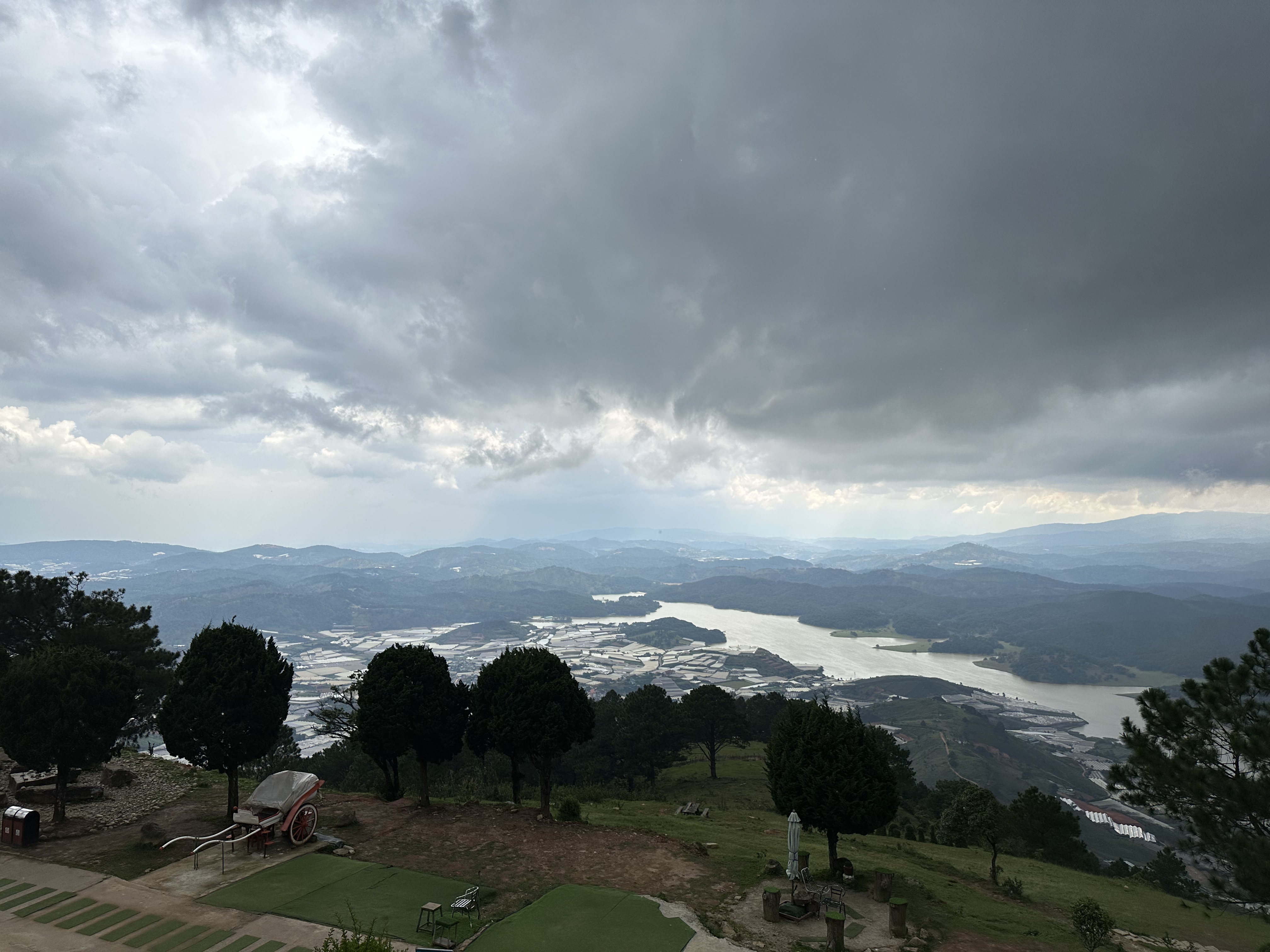 랑비앙산을 올라가 가장 기억에 남는 순간은 정상에 도착했을 때였는데요. 정상에서 바라본 경치는 정말 압도적으로 아름다웠습니다. 높은 산과 하늘이 어우러진 풍경은 한 폭의 그림 같았습니다. 함께 간 부모님과 저의 딸도 경치를 만끽하며 즐거운 시간을 보냈습니다. 다만 제가 방문한 8월은 달랏의 우기라, 도착하고 얼마 있지 않아서 매우 강한 비가 내리기도 했습니다. 너무나 당황스러웠지만 다행히 랑비앙산에 카페가 있어서 그곳에서 비를 피하며 아보카도 아이스크림을 맛보기도 했습니다. 껨보(kem bo)라고 불리는 이 아이스크림은 호불호가 나뉘는 맛인데요. 저는 개인적으로 별로 입맛에 맞지는 않았는데 저의 남편은 굉장히 맛있다며 바닥까지 싹싹 긁어서 먹었습니다.